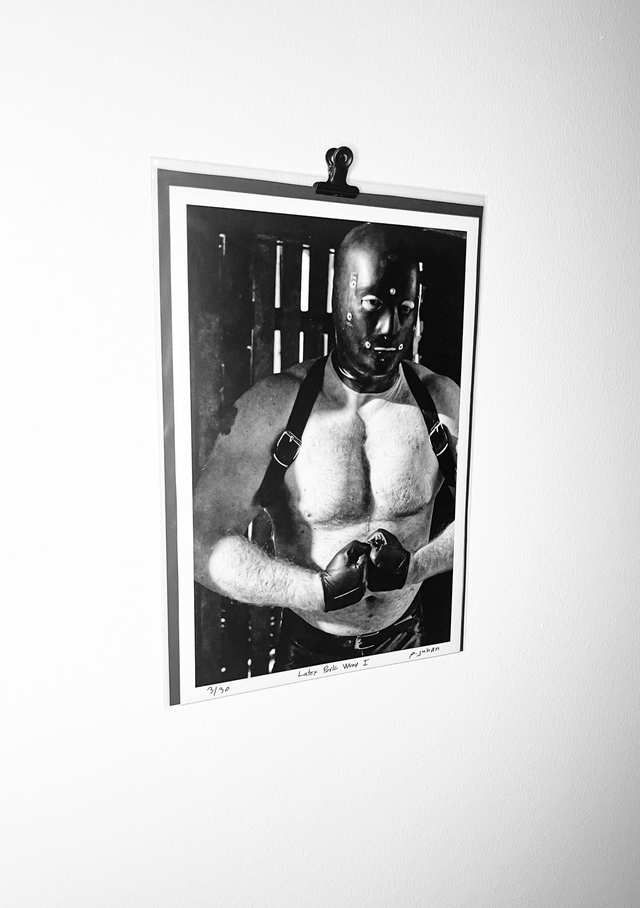 "Latex Pork Wrap I" monochrome photographic art print by Peter Juhan from PIG FACTORY (2024) exhibition.